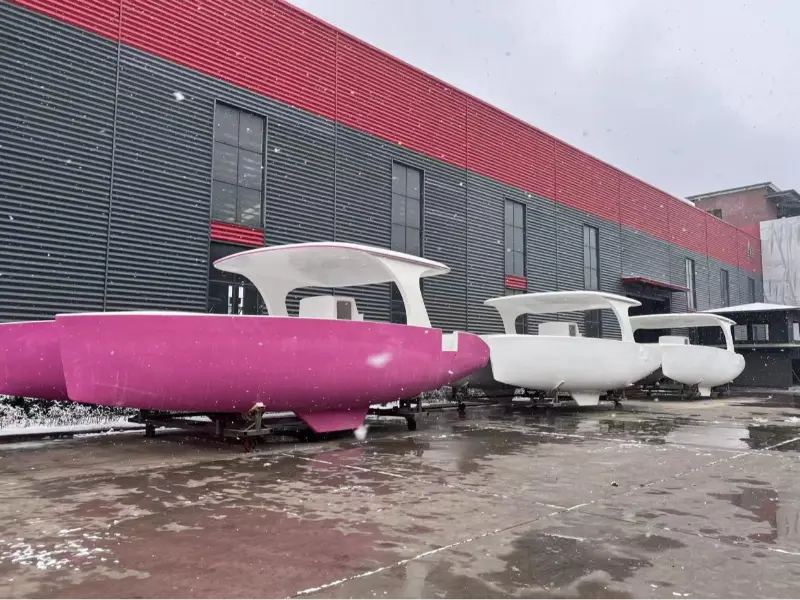Цей пришвартований у снігу човен дуже популярний на туристичному ринку - це вітрильний катамаран 10,28 м. Компанія Lawada® цілодобово працює над виготовленням моделі катамарана 10,28 м, яку клієнт планує випустити на ринок з настанням весни наступного року. Цей човен поєднує в собі комфорт і ефективність, використовує переваги човнів серії Lawada® щодо конструкції катамарана: простора палуба може вмістити від 12 до 40 пасажирів для круїзу. Висока економічна ефективність: матеріал зі скловолокна означає менші витрати на обслуговування. Для туристичних підприємств цей човен має низьку вартість, високий прибуток і швидко відновлюється. Lawada® marine також готується створити радісні моменти для кожного пасажира.