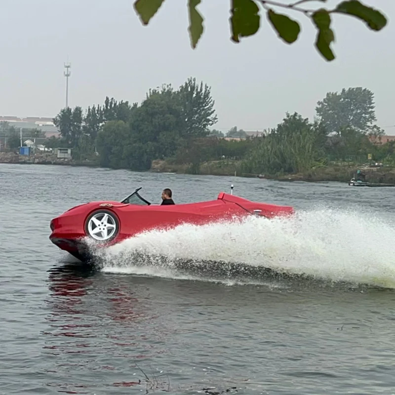 Реактивний двигун, встановлений ззаду автомобіля, рухає автомобілі водяного струменя вперед потужним впорскуванням води. Оскільки потужність двигуна безпосередньо визначає швидкість, переважні високоефективні реактивні двигуни.